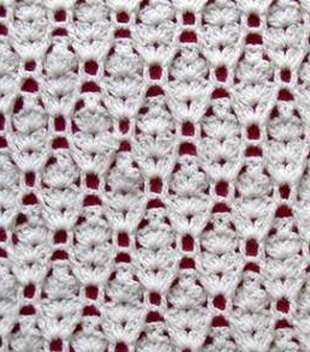 Плотный узор, напоминающий плетенку, связан рельефными (выпуклыми) столбиками. Раппорт узора по вертикали 6 петель, по горизонтали — 4 ряда. Для образца узора набирают цепочку воздушных петель числом, кратным 6 плюс 2 петли для симметрии узора, плюс 3 петли для образования бокового края (петли подъема).