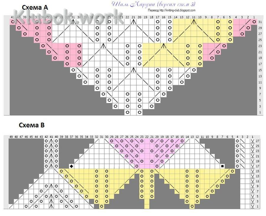 начинай вязать по схеме В, меня там пугали серые квадратики, но потом до меня дошло, что на них смотреть вообще не надо!!