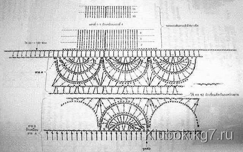 Юбка вяжется поэтапно снизу вверх, слоями (ярусами):