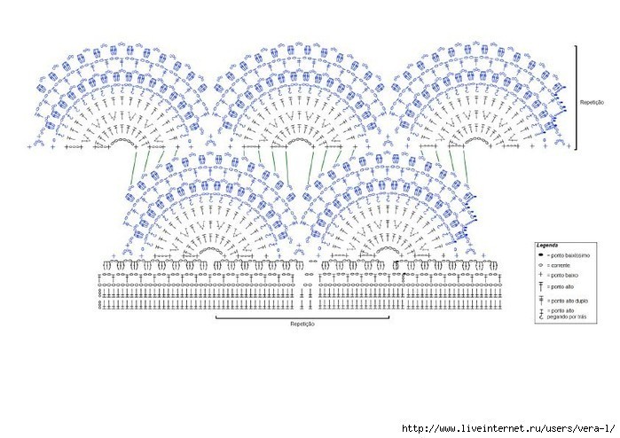 Продолжать вязать арками по схеме, повторяя раппорт. чтобы получилось 5 арок в высоту.