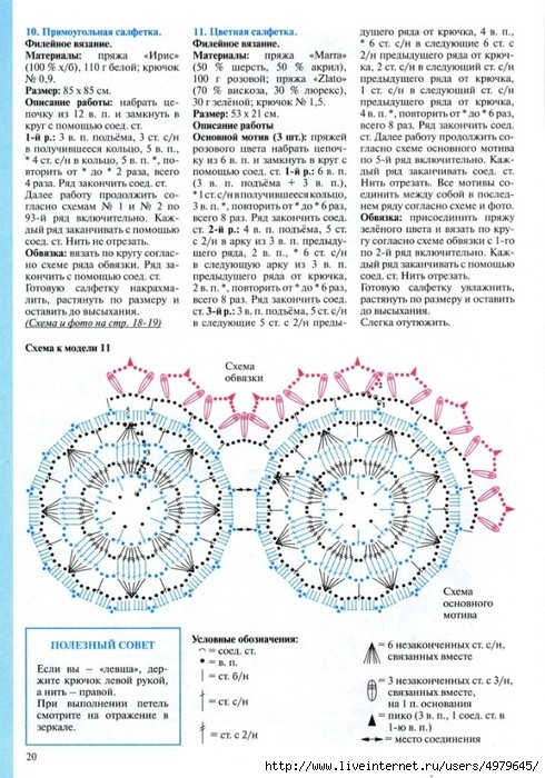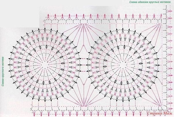 6й ряд: 2 в.п., 7 в.п., *1 полуст. с накидом, 7 в.п.* повторить 9 раз, соед.ст.