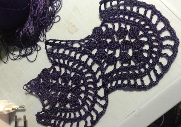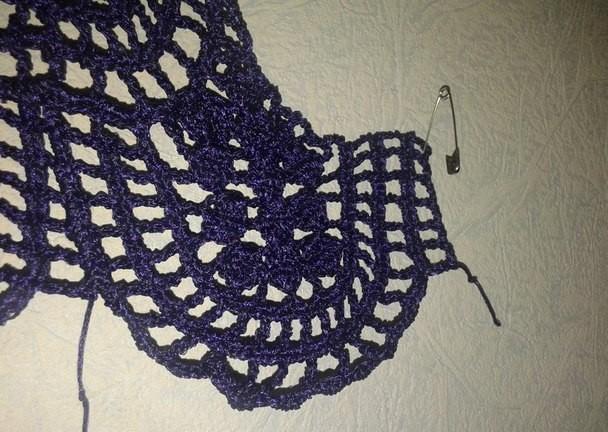 Таким образом мы вяжем 8 мотивов(по фото) или столько, сколько нужно Вам. Получается диагональная полоса от правого плеча до левого бедра без отрыва нити.