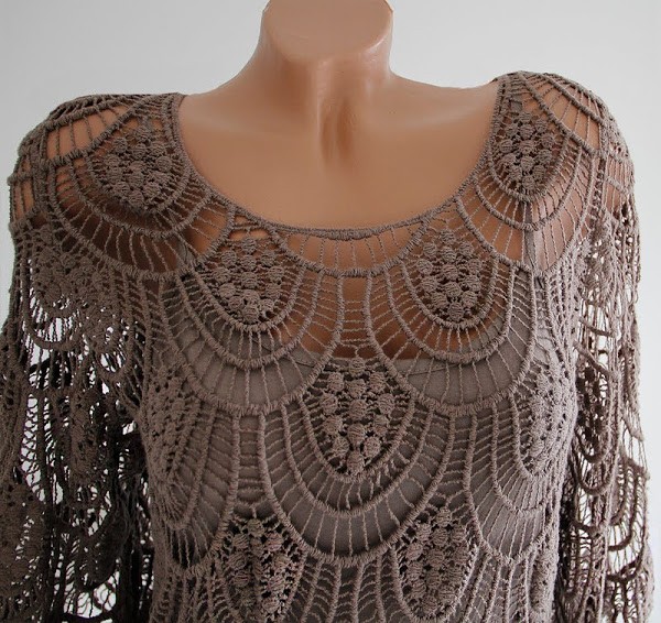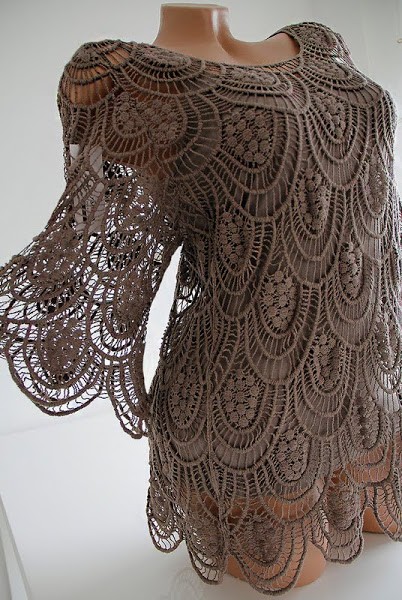 Восхитительная, чудная туника , созданная германским дизайнером, будоражит умы многим вязальщицам, как повторить схему гипюрного полотна? Она придумана!