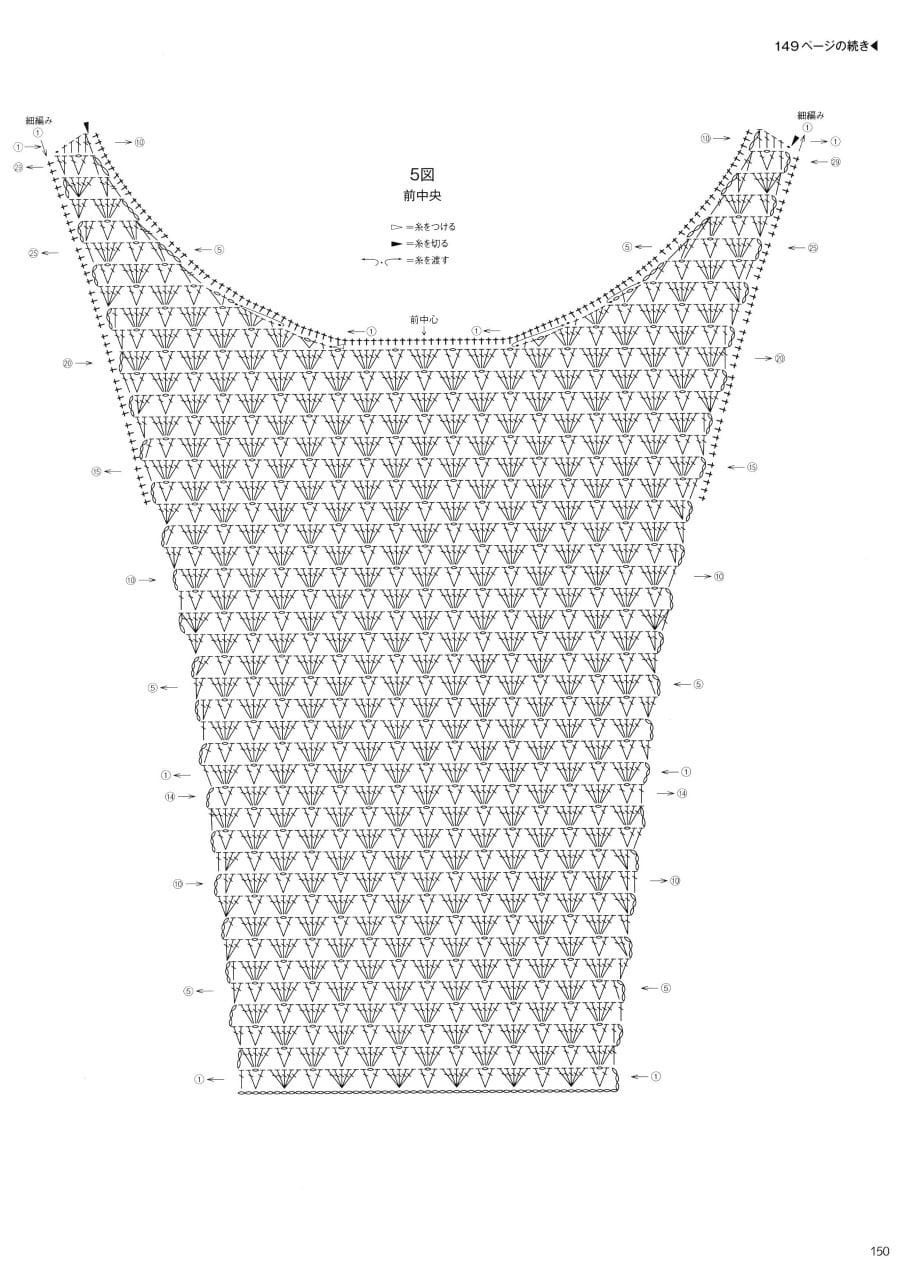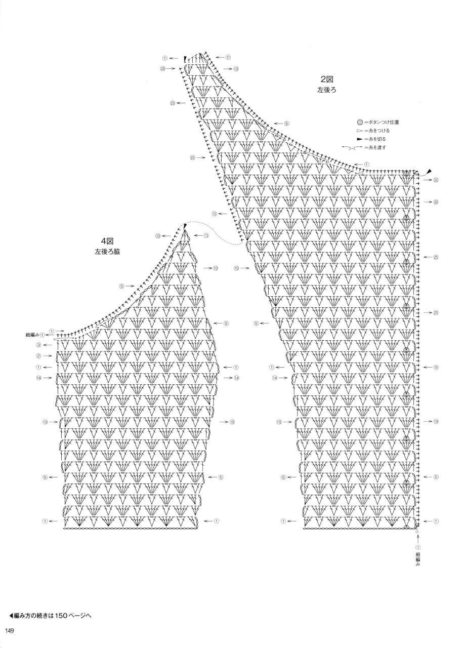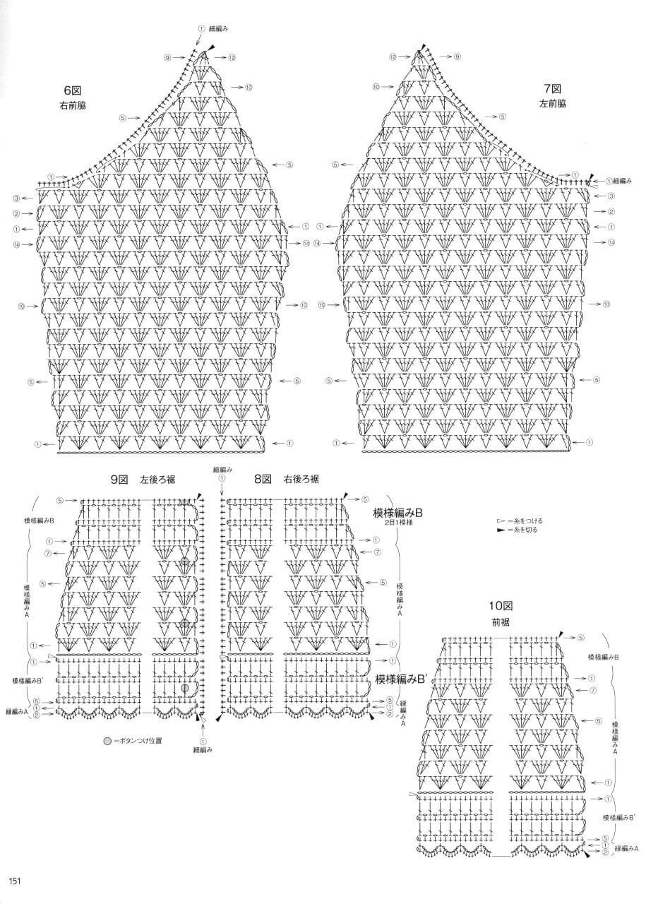 The bodice is worked in Pattern A, the hem in Patterns A, B, and B’,