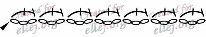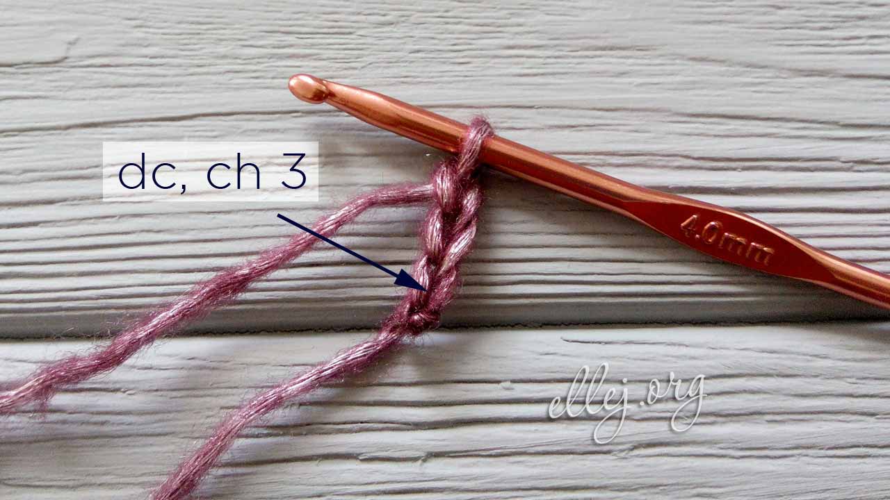 3 воздушные петли, столбик с накидом в первую, снова 3 в.п., ССН в первую из них и так далее