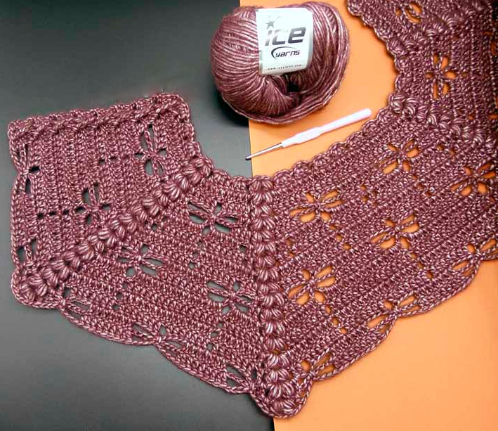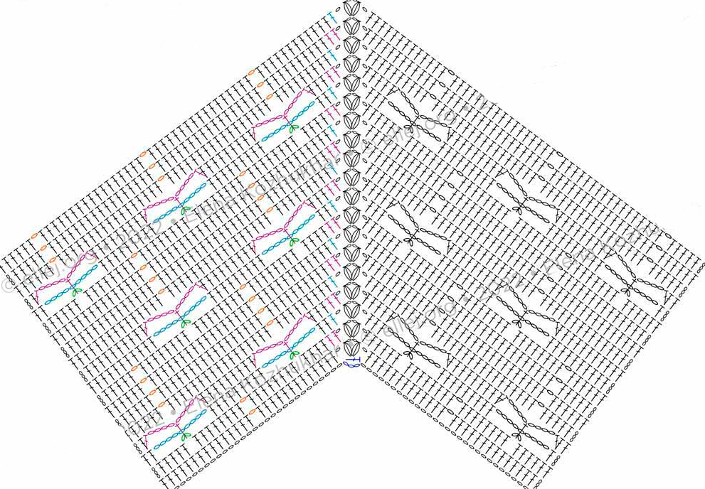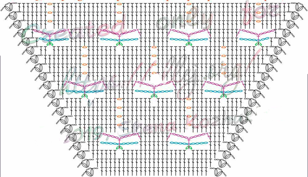 Самое первое — это расчеты, которые я провела для себя, а вернее, распределение наборного края. Наборный край я уже по привычке вяжу из ячеек по этой схеме: