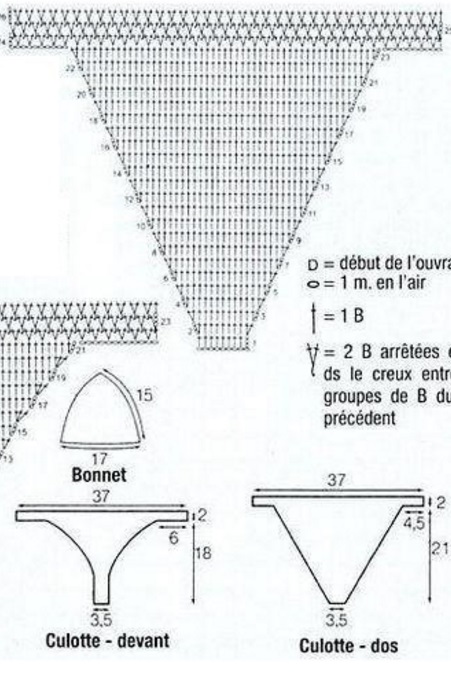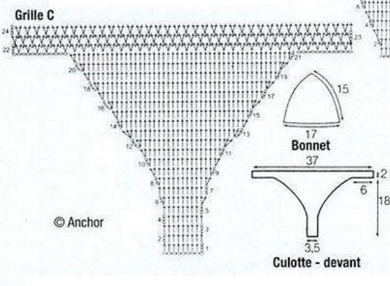 Модный купальник для молодой девушки, который станет настоящим украшением стройной фигуры, связанный крючком. Узор "ананас" взят за основу для вязания чашечки этого купальника. Плавочки к купальнику предлагается связать более плотным узором. Для вязания купальника лучше выбирать яркие, темные цвета. Остановите свой выбор на пряже устойчивой к воздействию солнечных лучей и морской воды. Вы также можете дополнить такой купальник, связанным из той-же пряжи пляжной туникой или парео.