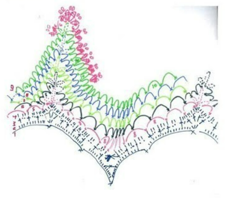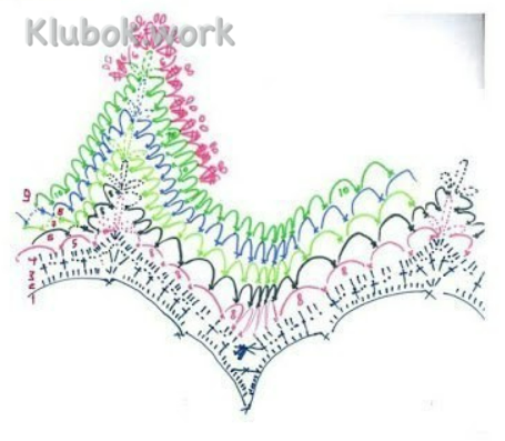 4 ряд – в каждую арку сделать ст. б/н, 1 в.п., 5 ст. с/н, 1 в.п., ст. б/н.