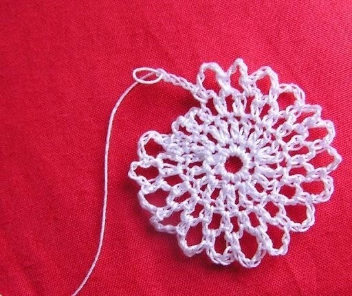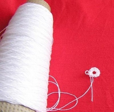 Для того чтобы связать такую салфетку, нам понадобится 50 гр ниток белого цвета, намного черного и красного цвета ниток мулине для отделки и крючок № 1,2.
