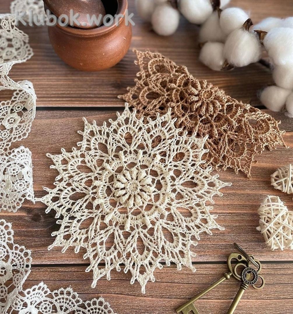 Салфетка «Doily» Патриции КристофферсенKlubokhttp://klubok.work/2/196/6653/Klubokhttps://klubok.work/css/image/top-logo-en.pngРазмер в готовом виде 50 см в диаметре.