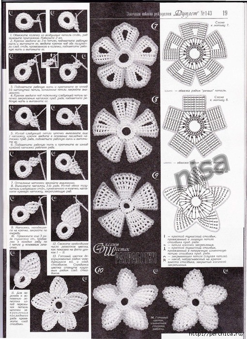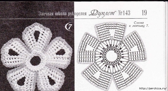 Основа лепесткового круга связана по спирали столбиками без накида: 6-12-18-24-30. Каждый из 5 лепестков связан на шести петлях основы.