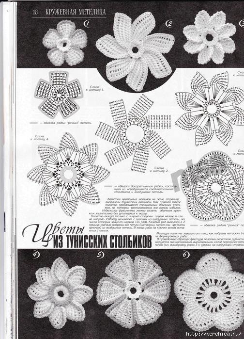 схемы цветов тунисскими столбиками