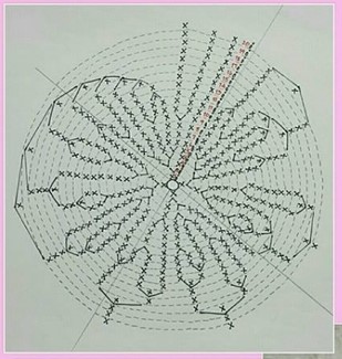 4р. 1ВП, (1 сбн в эту же петлю, 2 сбн в след. петлю, (1 сбн, 2 сбн в след. петлю)*4 раза, СС в начало ряда (24 сбн)