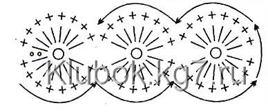 без накида по схеме и замкните их в кольцо. Следующие 18 колечек обвяжите также