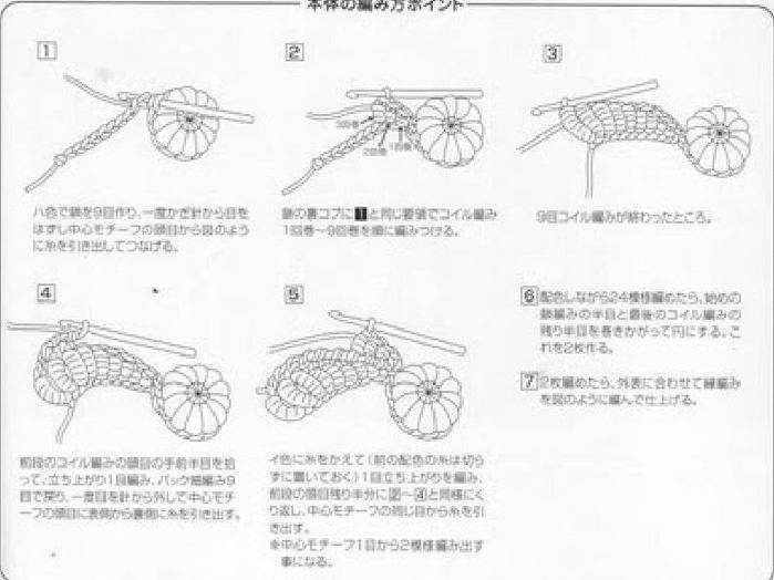 Полустолбик, столбик, 12 столбиков с накидом в 2 приема, крючок вводим под обе полупетли основания.