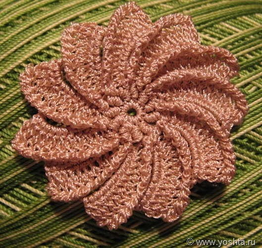 1 р. Вяжем цепочку из 14 воздушных петель, соединяем полустолбиком с основанием (серединкой ромашки).