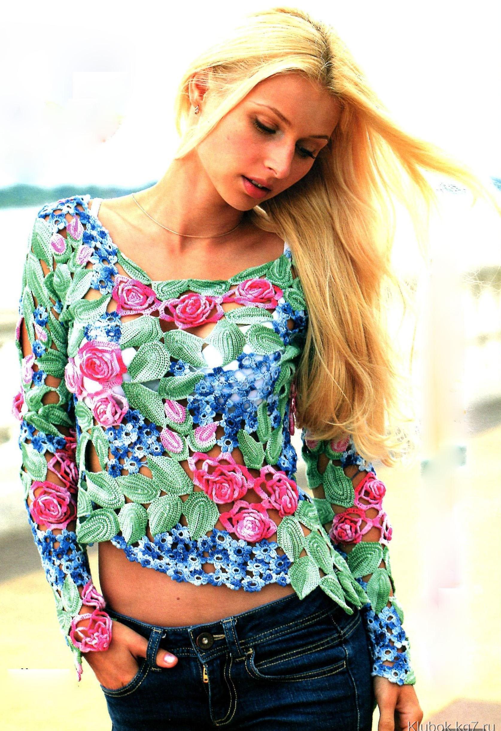 Пуловер из ирландского кружеваKlubokhttp://klubok.work/2/40/4279/Klubokhttps://klubok.work/css/image/top-logo-en.pngОчаровательный пуловер полностью состоит из цветочного