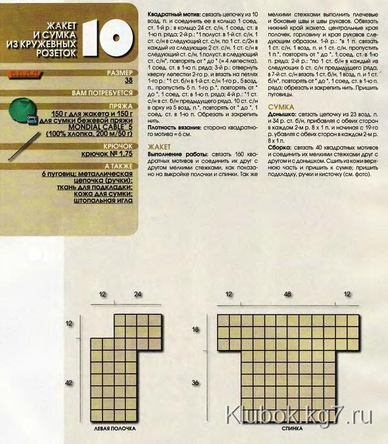square motif = 6 cm. pattern of the jacket from lace motifs JACKET Execution