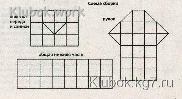 по переду узором по схеме 4, а горловину, низ изделия, низ рукавов узором по
