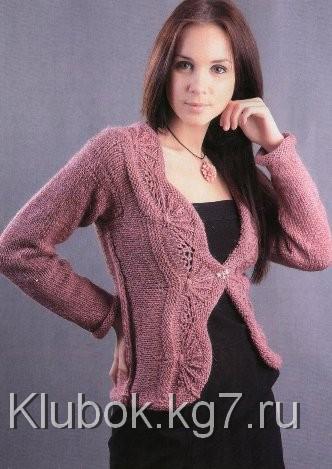 You will need: yarn "Melange from Troitsk" (70% wool, 30% acrylic, 150 m/100 g) — 700 g of pink color, needles No. 4. Jacket size: 38