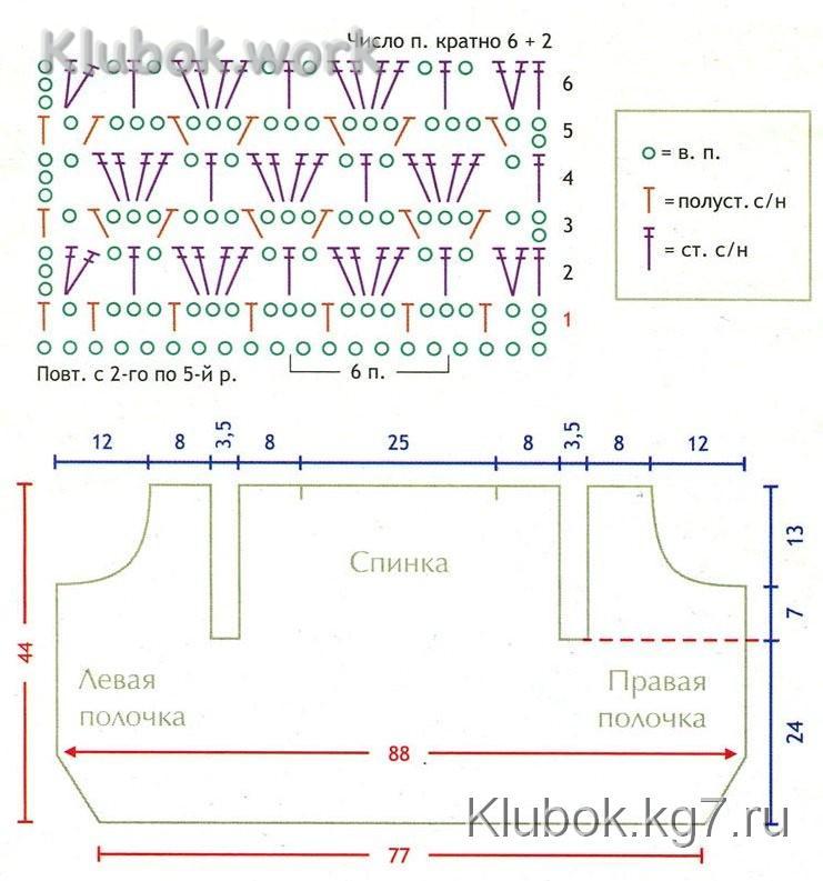 плечевого шва по 10 см и вяз. на этом участке узором по схеме на протяжении 4