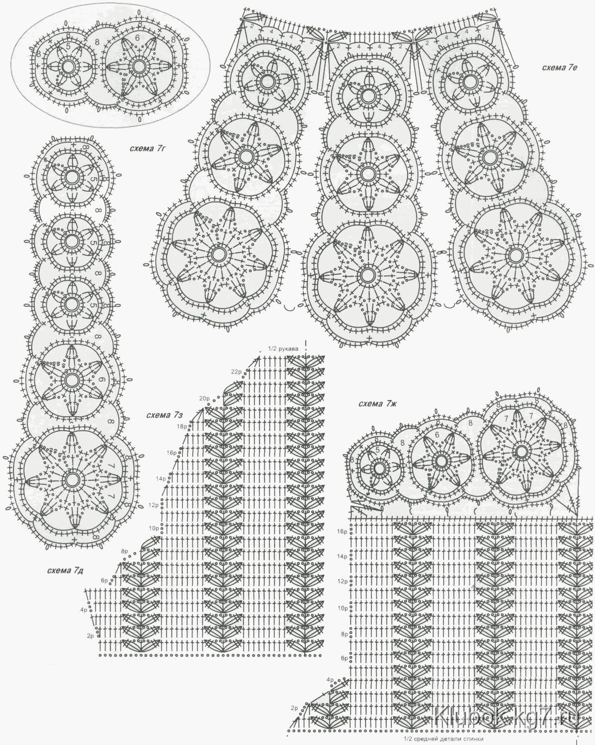 First, knit a row according to diagram 7e (to align the upper part of the lace