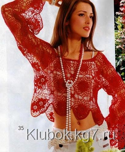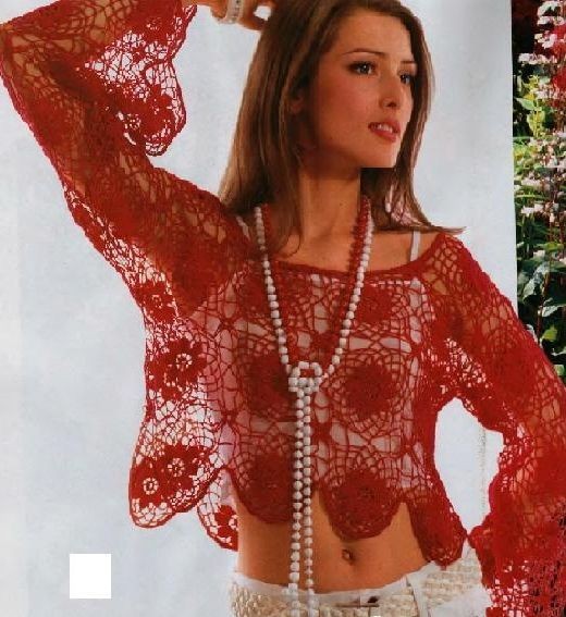 Beautiful lacy blouse, crocheted from motifs, suitable for young, active, and energetic individuals. In this blouse, you will be the queen of the flamenco-style party.