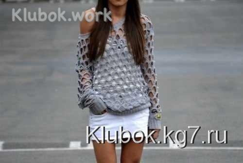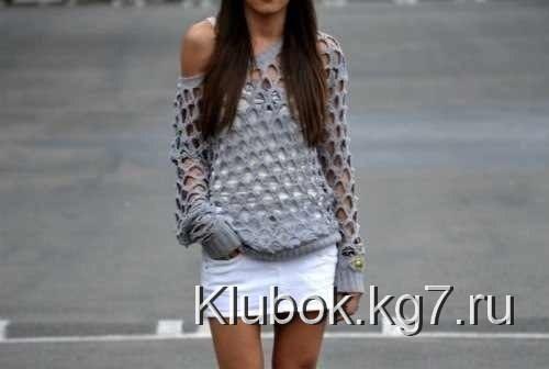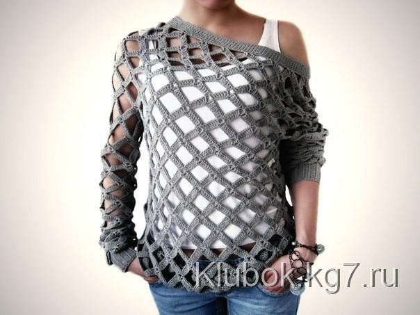 Просто изумительный джемпер в крупную сеточку можно носить как на белье, так и с любым топом. Модель позволяет носить пуловер, открыв одно пле