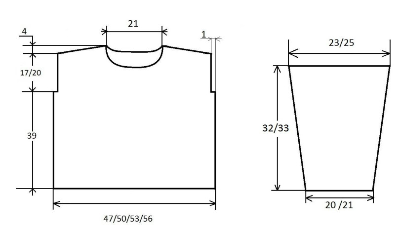 Джемпер вяжется частями и состоит из тела и 2 рукавов.