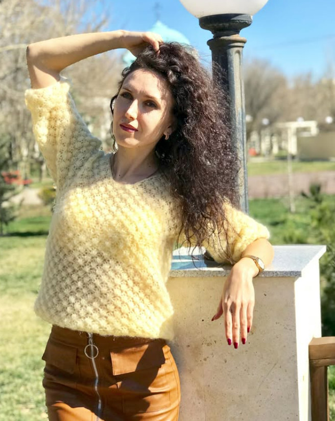 При выборе пряжи ориентируемся на мохеровый столбик в нити основе. Если у вас пышная грудь или вы размера 46, 48, то нить лучше выбрать менее набитую мохером.