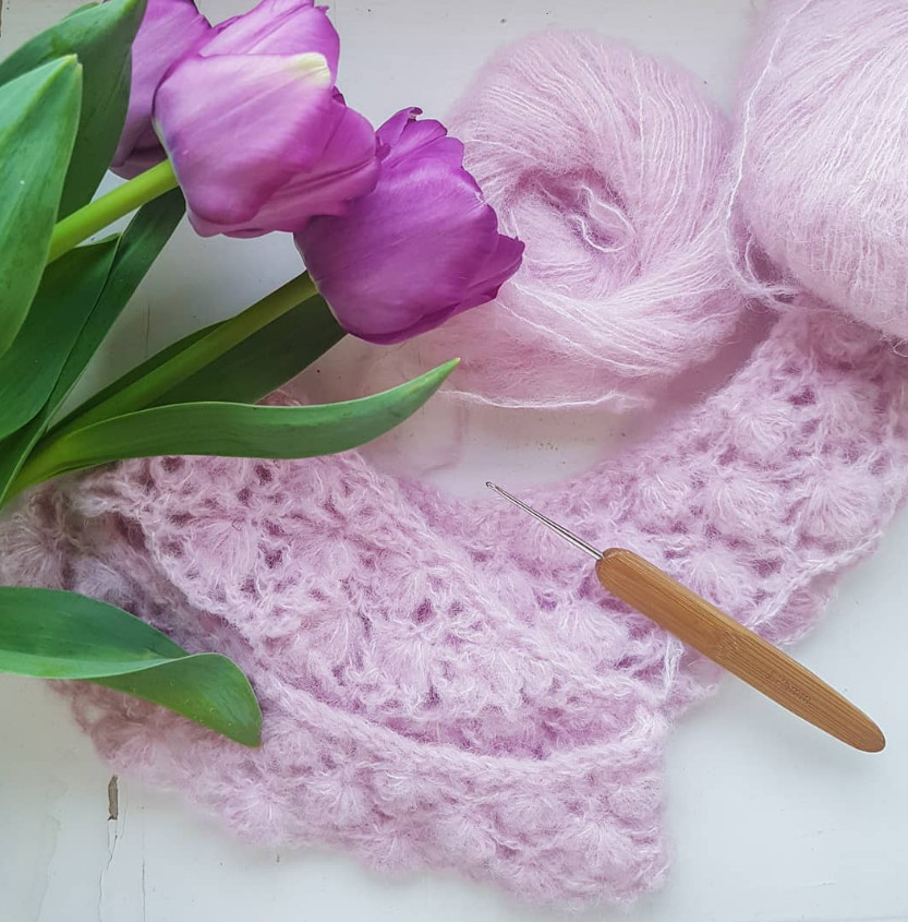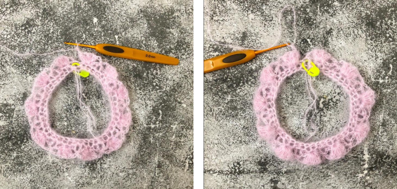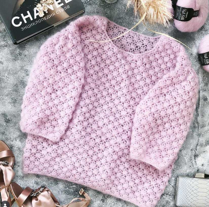 Когда вы будете вязать узор, не затягивайте петли туго. Пусть пустоту заполняет мохер.