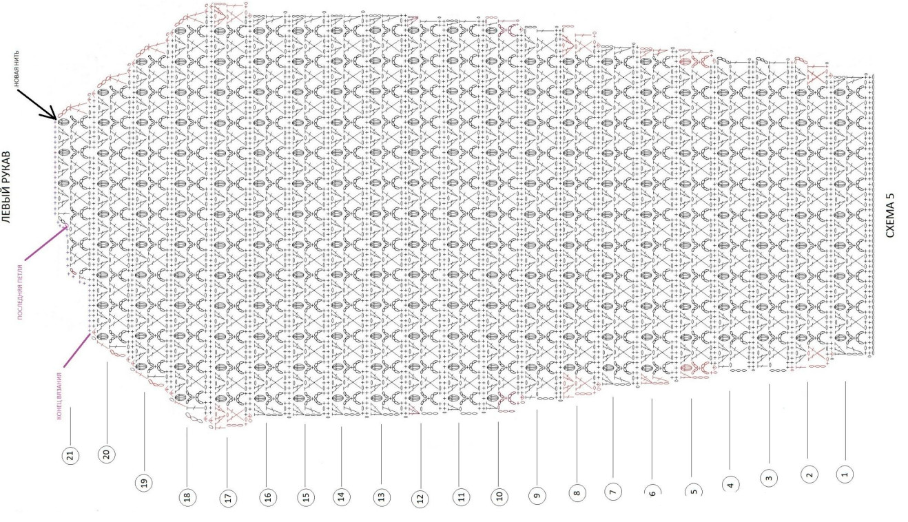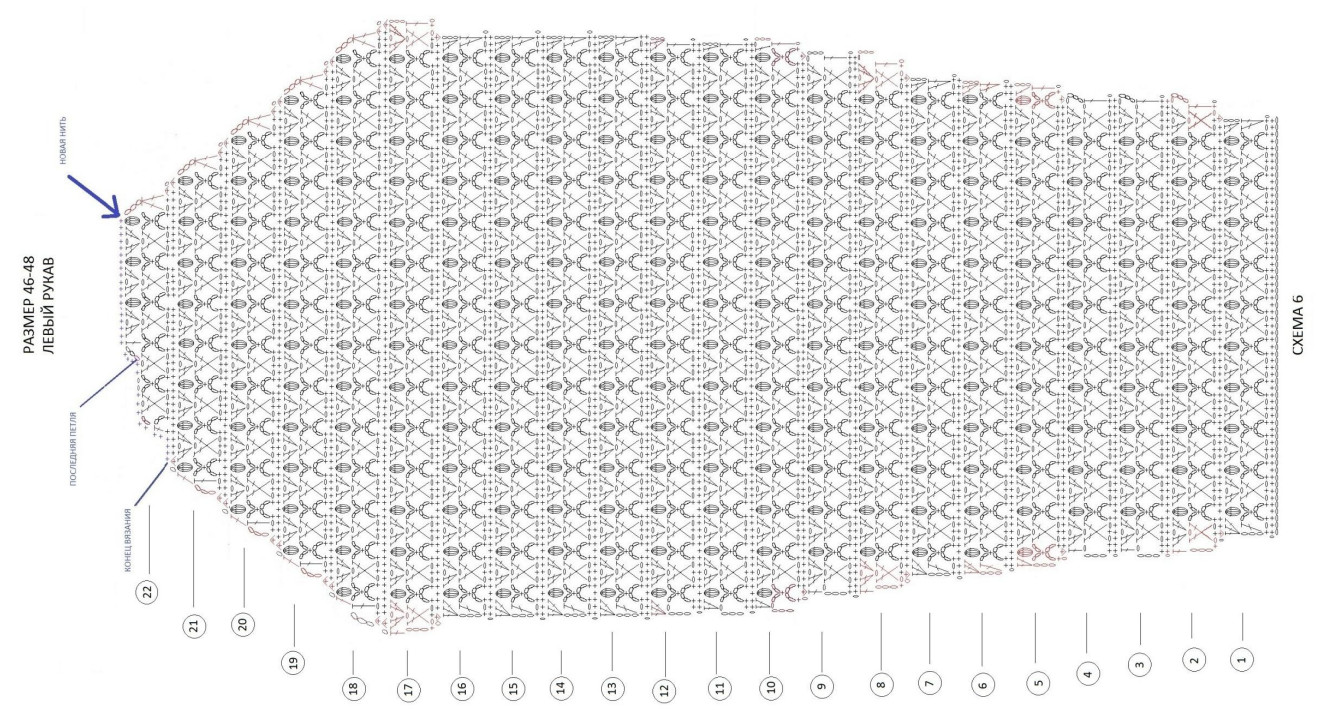 Все прибавки и убавки на схеме обозначены красным цветом.
