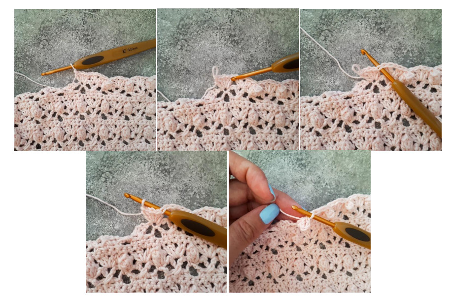 Из одной петли основания вывязываем 5 ССН (столбиков с 1 накидом).