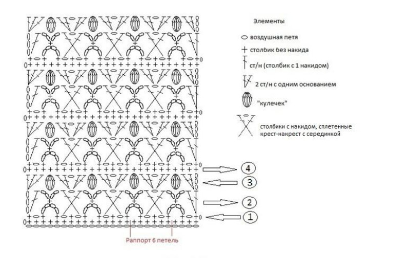 6. столбики с накидом, сплетенніе крест-накрест с серединкой