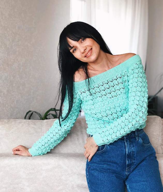 Все расчет даны на рост примерно 166–170 см. Если вы ниже (выше) ростом, то при вязании спинки и переда уберите (добавьте) нижние 4 ряда узора (1 полоса с узором кулечек).