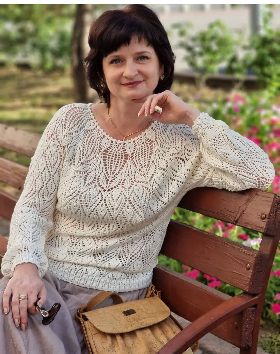 All measurements are for a height of approximately 166–170 cm. If you are shorter (taller) in height, when knitting the back and front, remove (add) the bottom 4 rows of the pattern (one stripe with the puff pattern).
