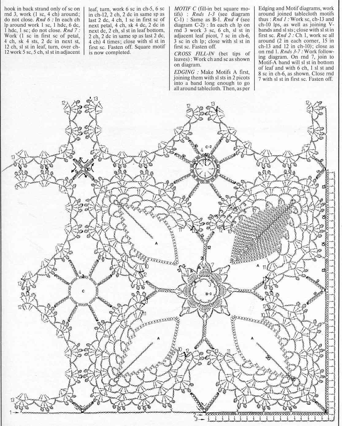 leaves into a square motif. The diagram indicates with arrows where to attach