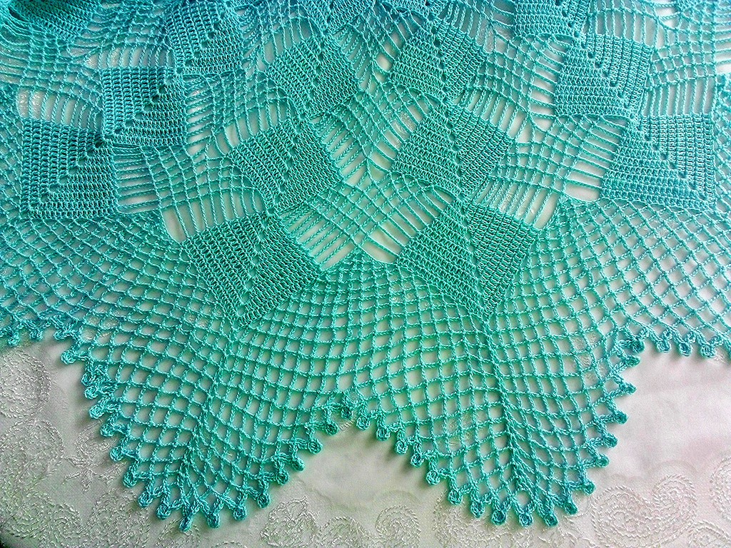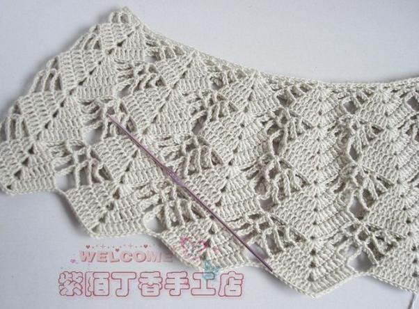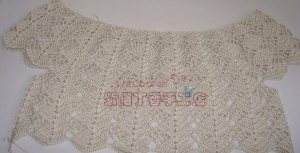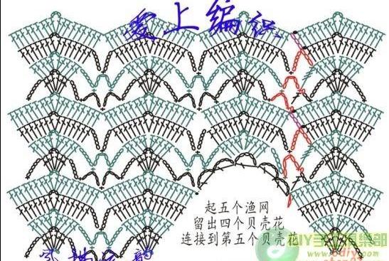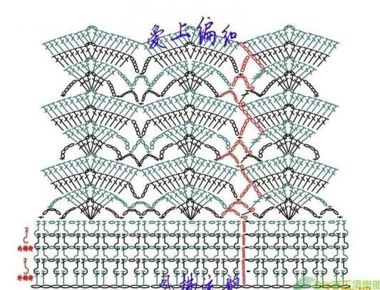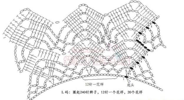 Сначала связать кокетку — 12 веерных мотивов, соединённых в круг, как на схеме.