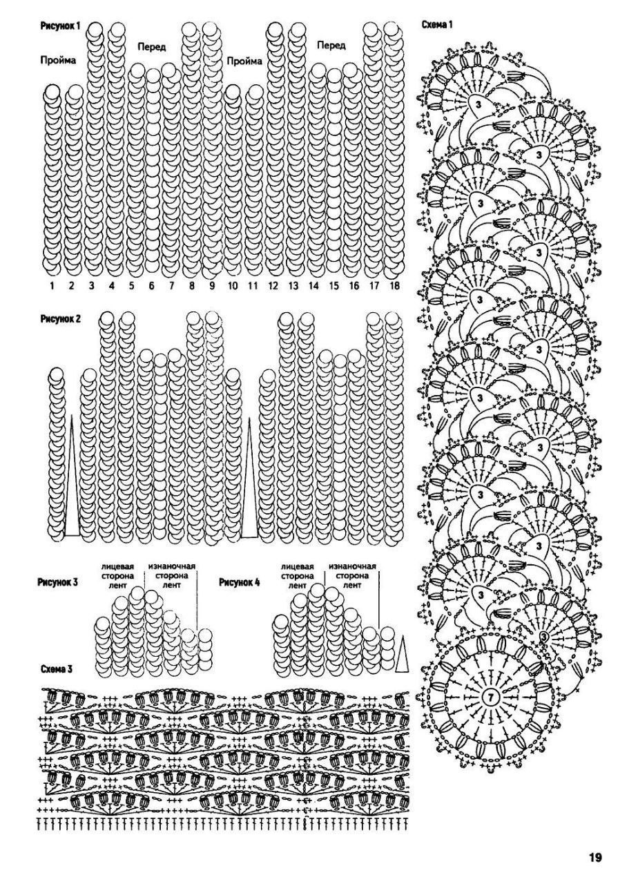 Свяжите ещё 2 ленты по схеме 2 — это центральные полосы переда и спинки.