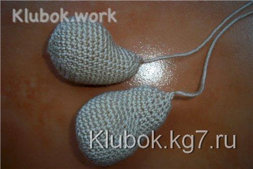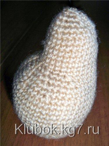 На ножках и ручках сделать по 1 утяжке, формируя копытца.