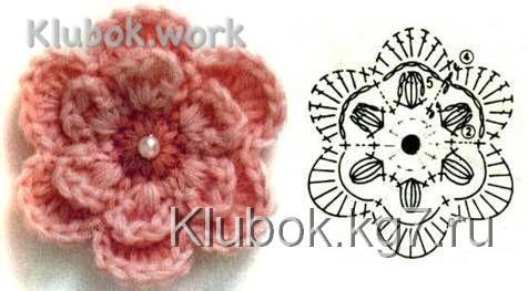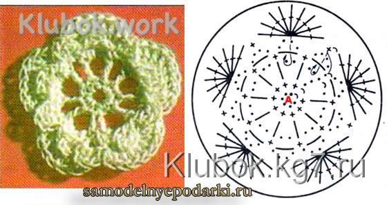 Вяжем произвольной формы мотив фриформ За начальную точку берем любой из заранее связанных цветочков.