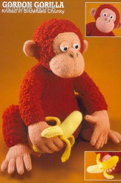 Дословно сборку переводить не стала, т.к .все и так понятно. Детали сшивать матрасным швом с правой стороны. При вязании буклированной пряжей автор просит не забывать, что изнаночная сторона работы в данном случае является лицевой. Игрушку набивать мягким материалом ( синтепух, файбер, синтепон). Автор напоминает, что при сшивании деталей игрушки внимательно следить за булавками, чтобы случайно не оставить их в игрушке. Банан можно пришить к ладошке гориллы, а можно зафиксировать с помощью контактной ленты. Тогда банан можно будет убирать из лапы обезьяны.