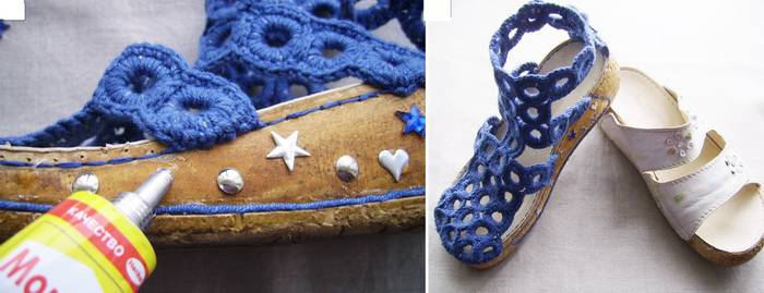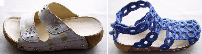 1. Для изготовления вязаных сандалий подойдет подошва от старых удобных любимых босоножек. Они уже не радуют нас, но их так жалко выбросить. Используйте их для своей новой идеи!