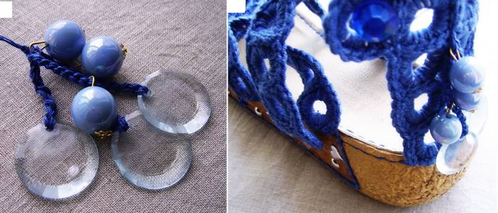 12. А теперь приступаем к самому приятному моменту в любой работе – украшению нашего изделия. Цепочками из воздушных петель соедините бусины в красивую композицию. Прикрепите украшение к сандалиям.