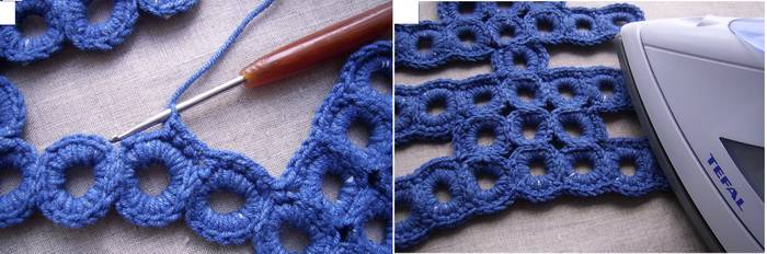 8. Для придания жесткости вязаной детали сделайте по ее контуру сплошную обвязку столбиками без накида. Готовую деталь выровняйте и отпарьте утюгом.