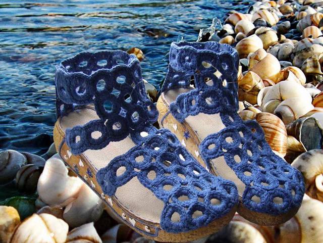 Предлагаю Вам мастер-класс по изготовлению вязаных сандалий в морском стиле!