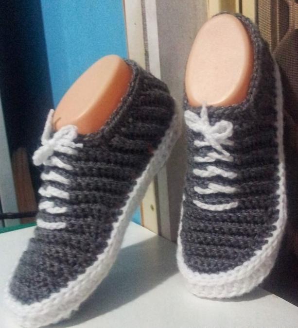 Осталось вставить шнурки в дырочки и пинеки кеды крючком готовы!