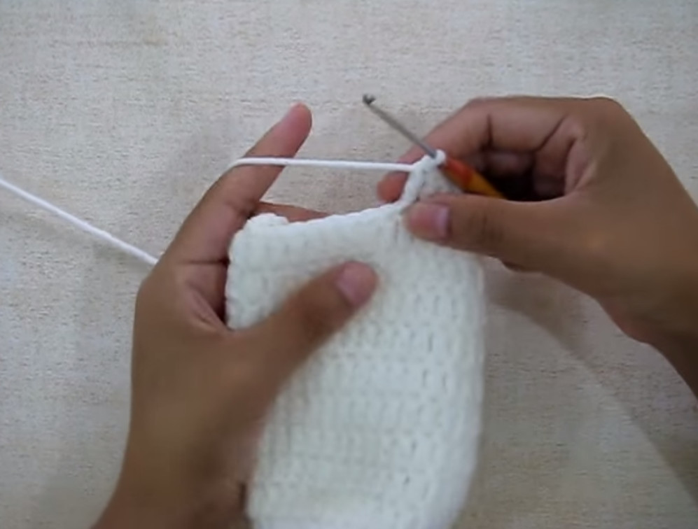 15-19-й ряды: 2 возд.петли, провязать ряд по одному столбику с накидом в каждую петлю.
