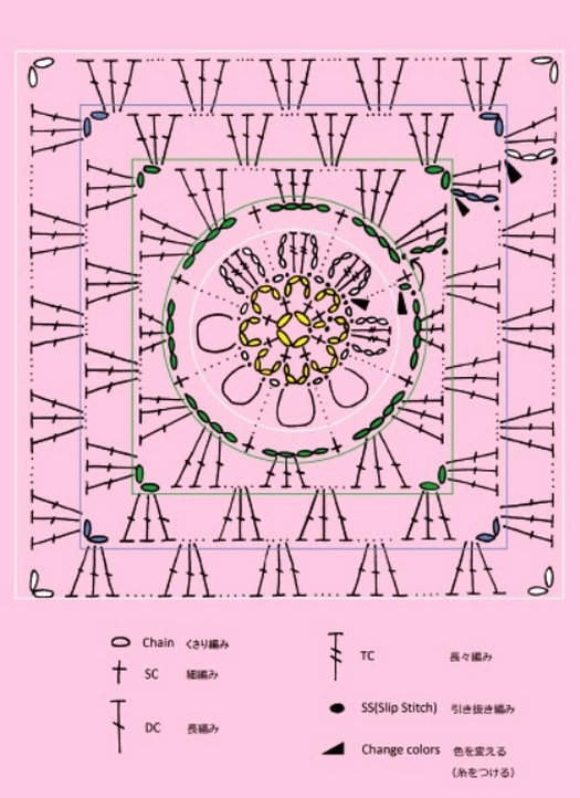 Вяжем сумочку крючком в соответствии со схемой сборки – вывязываем 21 мотив и сшиваем и в порядке, представленном на схеме.