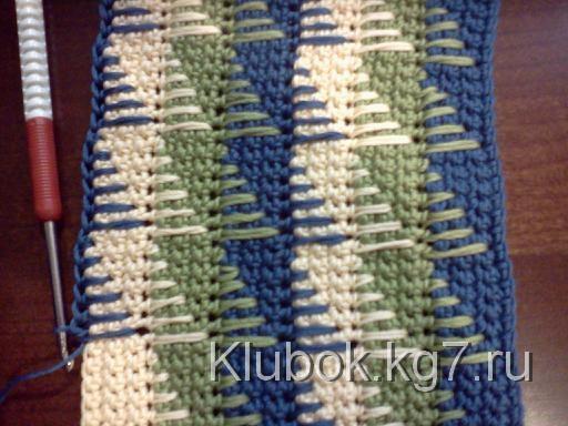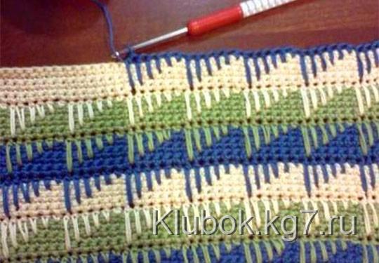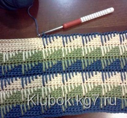 Cast a chain of yarn A of the desired length, the number of stitches is a multiple of 6 stitches